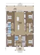 В доме предусмотрено четыре спальни и две ванные комнаты, что обеспечивает комфортное проживание для большой семьи. Наличие террасы добавляет дополнительное пространство для отдыха и развлечений на свежем воздухе. Чердак в проекте также предусмотрен, что может быть использовано для хранения вещей или организации дополнительного пространства. Отсутствие гаража компенсируется удобством расположения дома на участке, позволяя оптимально использовать всю площадь участка под жилые зоны.